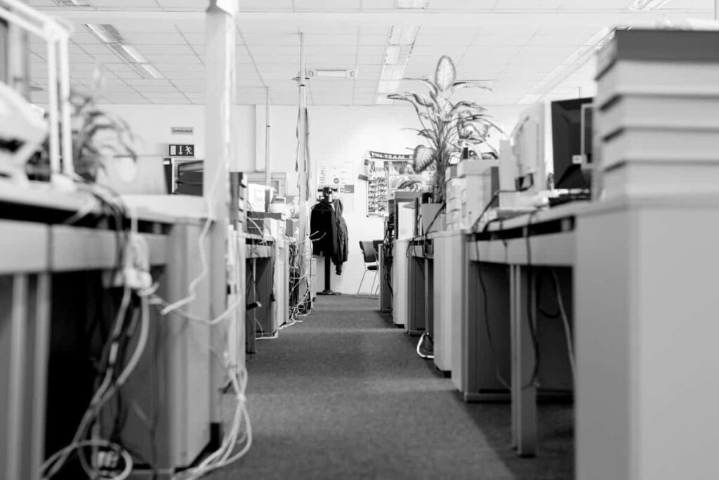 Das Industriezeitalter ab Mitte des 19. Jahrhunderts führte zu einem massiven Anstieg des Bedarfs an Bürobedarf. Die Gründung von Fabriken wie dem Emaillierwerk, dem Maschinenbau, der Glas-, Zellstoff- und Kunstseidenproduktion bedeutete eine Explosion des Verwaltungsaufwands. Personalakten, Produktionspläne, Lagerlisten, Bestellungen, Rechnungen, Korrespondenz – all dies musste in großen Mengen verarbeitet und archiviert werden. Die Büros dieser Fabriken waren die Vorläufer moderner Bürolandschaften.