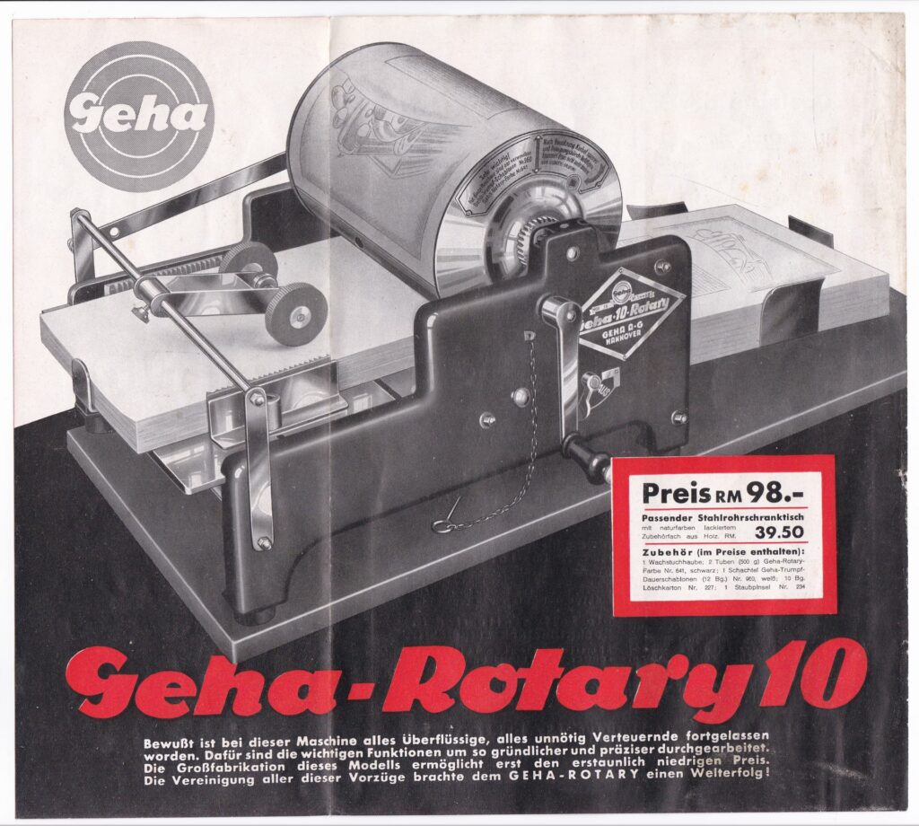 Nach Kriegsende wurde das repräsentative Werksgebäude an der Podbielskistraße im Jahr 1945 von der britischen Besatzungsmacht beschlagnahmt und diente als Sitz für die Militärregierung in Hannover. Erst im Jahr 1949 wurde der Betrieb wieder an GEHA zurückgegeben. Im selben Jahr konnte die Produktion wieder aufgenommen werden, zunächst sicherlich unter schwierigen Bedingungen, aber mit neuem Elan.